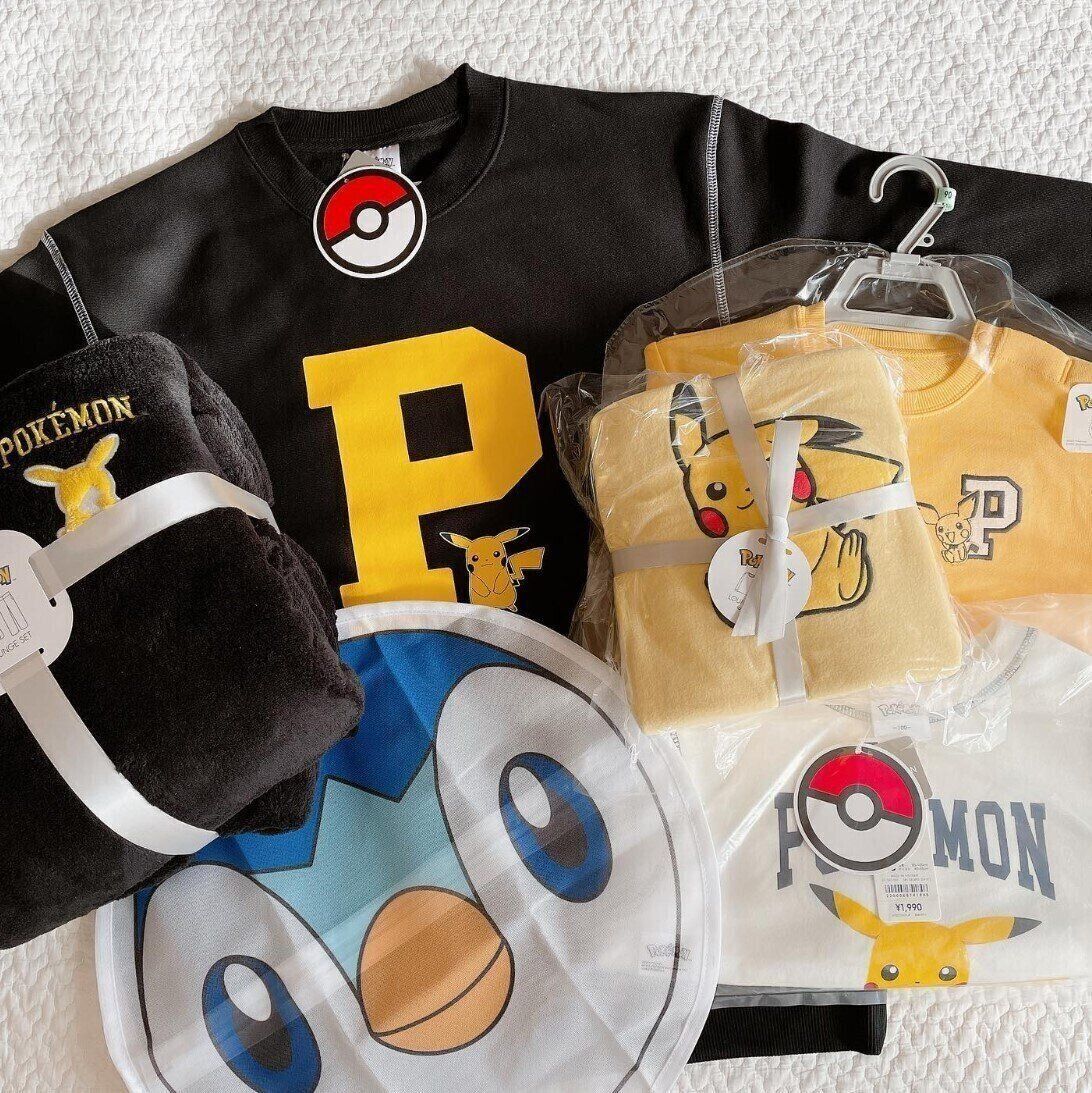 はなさんは、新作のポケモンアイテムをたくさん購入。「P」と大きく描かれた黒のスウェットは大人用で、ピチューのスウェット&白のピカチュウのスウェットは、キッズ用なんだそう。キッズ用では、来年も着られるように大きめサイズをゲットしたようですよ。親子おそろいでポケモンコーデをしても楽しそうですね♪