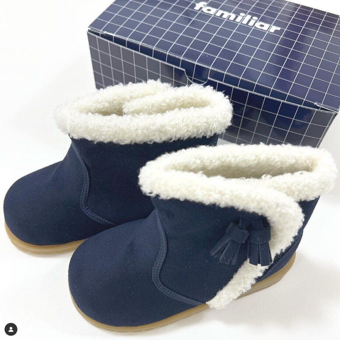 YUMAさんは、ファミリアにてこちらのベビーブーツを購入。小さいお子さんでもサッと履けそうな作りですよね。キレイなネイビーカラーもポイントに♪ 中がもこもこ素材で、足首まで暖かそう!シンプルなデザインなので、どんなお洋服とも合いますよね。