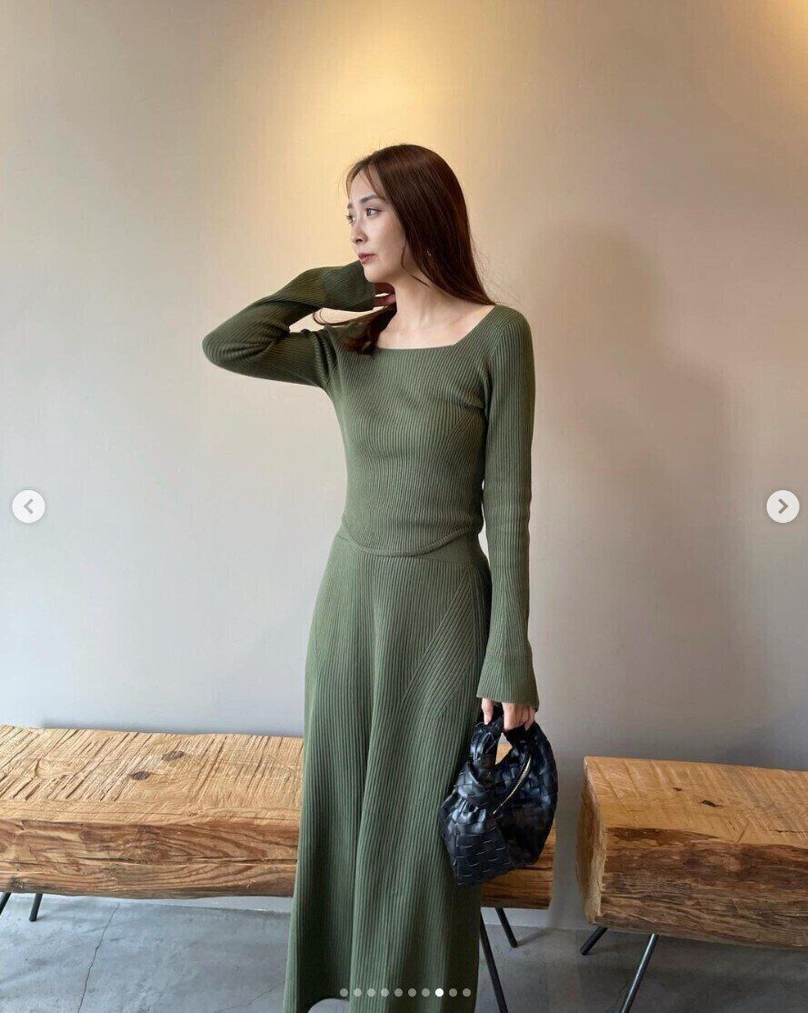nachicoさんは「3Dリブスクエアネックセーター」と「3Dリブロングスカート」を購入。曲線美が際立つような、素敵なデザインですよね。こちらのセットアップに合わせるコートは、ノーカラーのミドル丈コートがおすすめとのこと。シルエットも美しいですね。