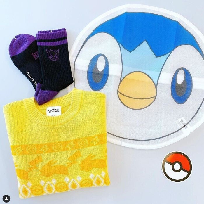 pika917shiron25さんは、男女兼用のKIDSクルーネックセーターと、大人用のハイアンクルソックスを購入。ニットのピカチュウが走っているデザイン、靴下のゲンガーカラーも激かわですよね。数量限定ノベルティのポッチャマランドリーネットもゲットできたようですよ♪