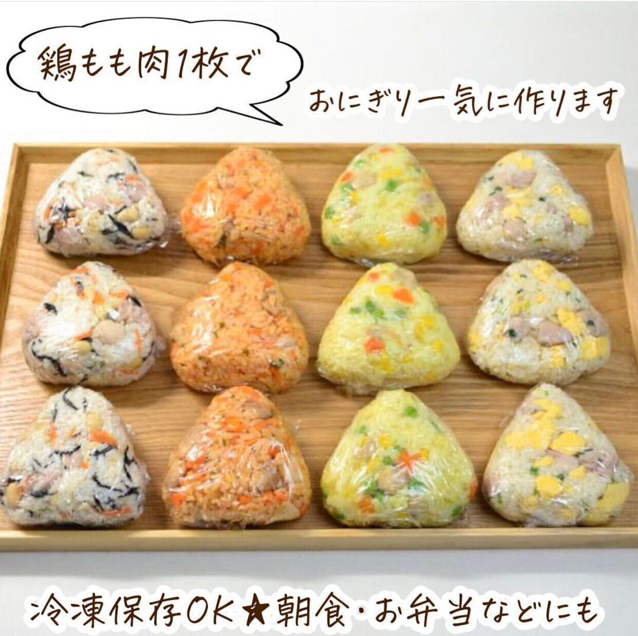 mami_tasu0208さんは休日にまとめておにぎりを作り冷凍保存しています。材料はご飯を炊いているあいだに一気に作るのがコツなのだとか。鶏もも肉1枚で作るチキンライスやバターチキンカレー、ひじき鶏五目おにぎりなど、どれもとてもおいしそう!食べるときはレンジでチンするだけのようです。とても簡単ですね。