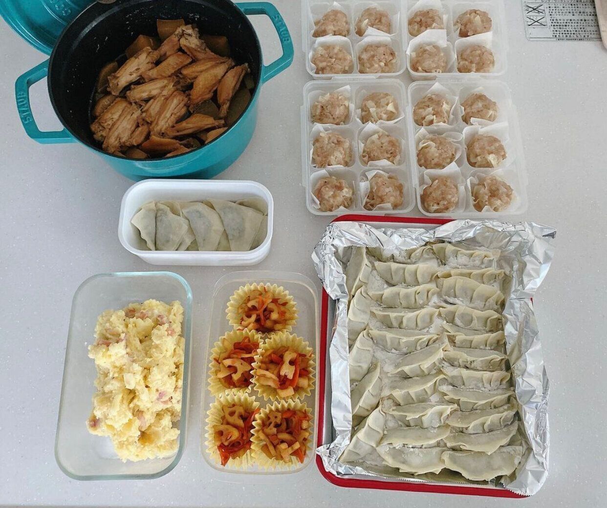 miryu302404さんは夕食用の餃子やしゅうまいなどを作り置きして冷凍しているそう。餃子の具としゅうまいの皮でワンタンも作ったのだとか。いろいろな種類のおかずを作っておくと便利そうですね。