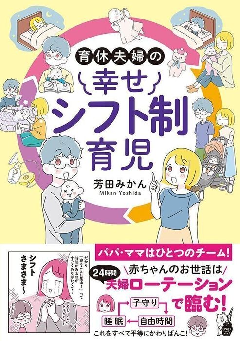 赤ちゃんのお世話を夫婦で分担する“シフト制育児”を考案し、出産後に実践。そのノウハウを芳田みかんさんが漫画にして『育休夫婦の幸せシフト制育児』という1冊の本になりました。