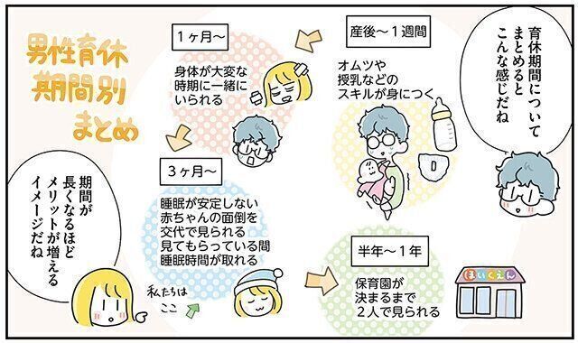 みかんさんは「育休は取ることが目的ではなく、どう過ごすかが重要」とも話してくれました。今回取材した私自身も夫が育休を3ヶ月取りましたが、理想どおりの育休とは言えませんでした。今思えば面倒くさがらず、みかんさんのように自分の考えを夫に共有したり、育休中の役割分担やシフトをしっかりと決めておけばもっと気持ちよく過ごせたのになぁと思います。育休を取らないこと=悪いことではありませんが、いざ夫が育休を取得するときは夫婦互いに育児に関心を持ち、計画性を持って取り組んでいくことが、育休期間をより気持ちよく効率的に過ごせると感じました。(文・清川優美)