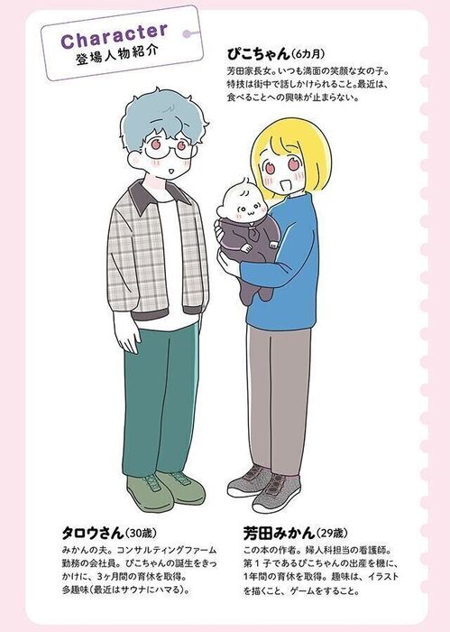 夫のタロウさんと1歳の娘のピコちゃんと3人暮らしの芳田みかんさん。ピコちゃんの出産を機に、夫婦かわりばんこでシフトを組んで24時間赤ちゃんのお世話をする“シフト制育児”を考案し、出産後に実践。そのノウハウを芳田みかんさんが漫画にして『育休夫婦の幸せシフト制育児』という1冊の本になりました。