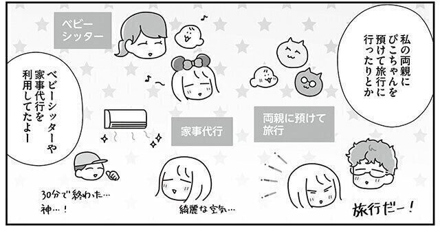 休日はお互いに育児からも家事からも解放される自由時間を設けて、リラックスすることを心がけています。例えば、土曜日の数時間は私が自由時間を楽しみタロウさんがワンオペし、逆に日曜日の数時間は私がワンオペしタロウさんが自由時間を過ごす、というように育児を分担しています」