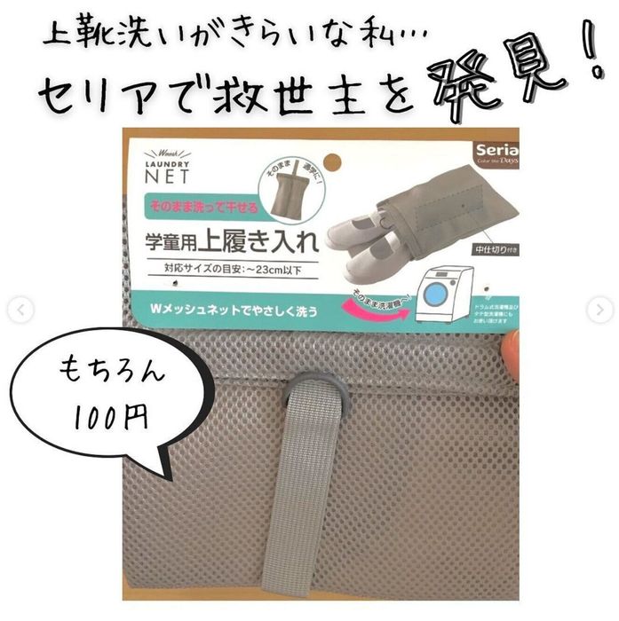 こちらはrate.maru9さんがセリアで購入した学童用上履き入れ。上履きが洗濯機で洗えるだけでなく、そのまま干したり上履き袋として使ったりできるそうです!上履き洗いが苦痛だったようで、これは神商品すぎると大絶賛の様子◎