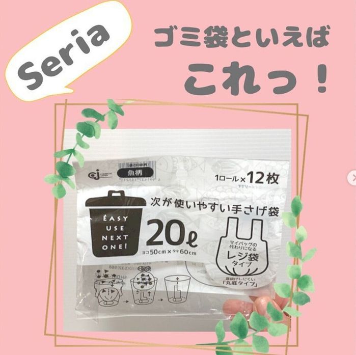 こちらはkirarin100kinさんがセリアで購入した「次が使いやすいゴミ袋 20L」。ロール状になっていて袋同士がつながっているので、使用後の袋を持ち上げるだけで次の袋が簡単に引き出せるんだとか♪ ゴミ箱の底に置いて使うので、収納場所にも困らなそうですね。