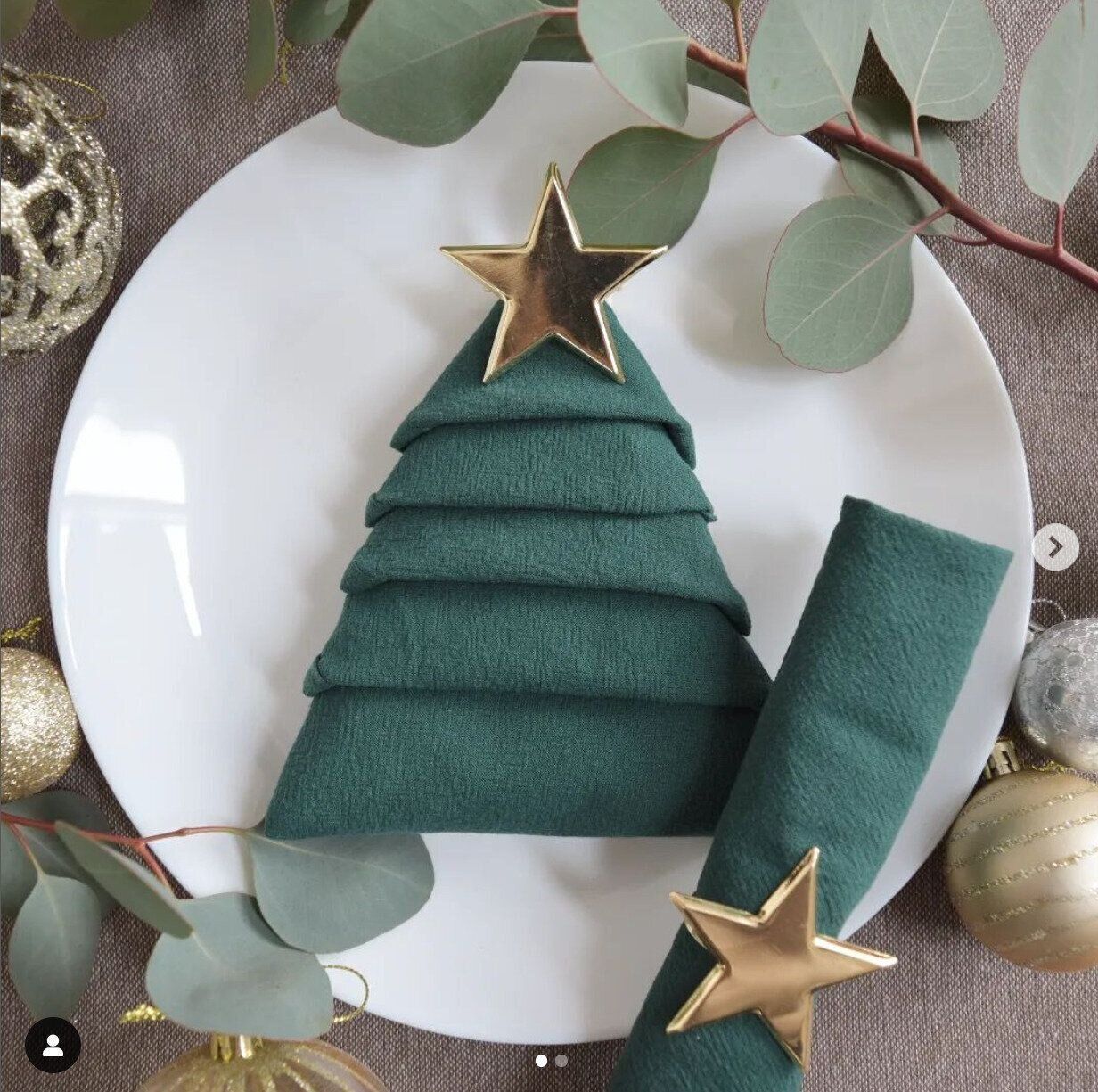 こちらはmoca___homeさんが3COINSで購入した星型リング付きテーブルナプキン。深い緑色のテーブルナプキンを探していたときにちょうど見つけたんだとか。クリスマスツリー型の折り方も書いてあるそうです。今年はどんなテーブルコーディネートにしようかと楽しみにしている様子♪