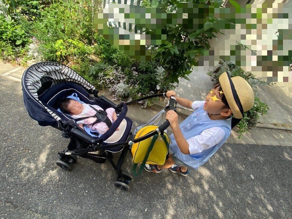 それがよっぽどうれしかったんでしょうね。みんなに「僕の妹だよ!妹なんだよ!」って、鼻の穴をふくらませながら自慢げに言ってたんですって。帰り道でも、自分でベビーカーを押しながら、「みんな、かわいいって言ってたね〜」という話をニヤニヤしながら連発していたそう。