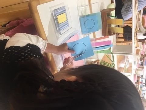 ほかにも、大きな針と毛糸で紙を縫ったり、花に水をあげたり、靴下を洗って干したりなど、生活する上で必要な動作が活動に組み込まれています。