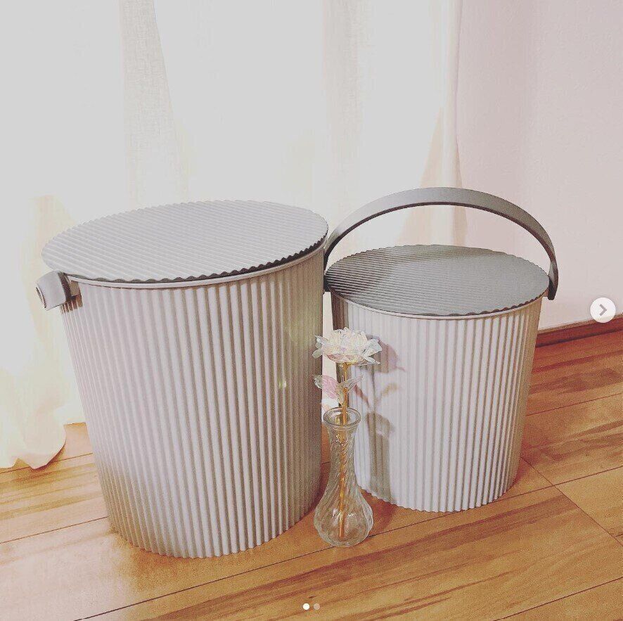 __myun_さんは、おむつ用ゴミ箱として「オムニウッティ」のリュクスグレーを購入。20Lは1階のリビング用、10Lは2階の寝室用にとゲットしたんだそう。おむつを卒業したら、こちらの中におもちゃや雑貨類を入れても便利だと人気のようですよ。シンプルで、インテリアにもなじむデザインですね。