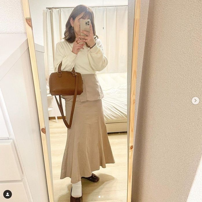 こちらはsy_____916さんセレクトの全身しまむらコーデ。ニットはしまむらで展開中のブランド「Linoluce(リノルーセ)」のものだそうで、価格は1,639円とのこと。ペプラムスカートは厚手なので冬でも着用できる素材感なんだとか♪