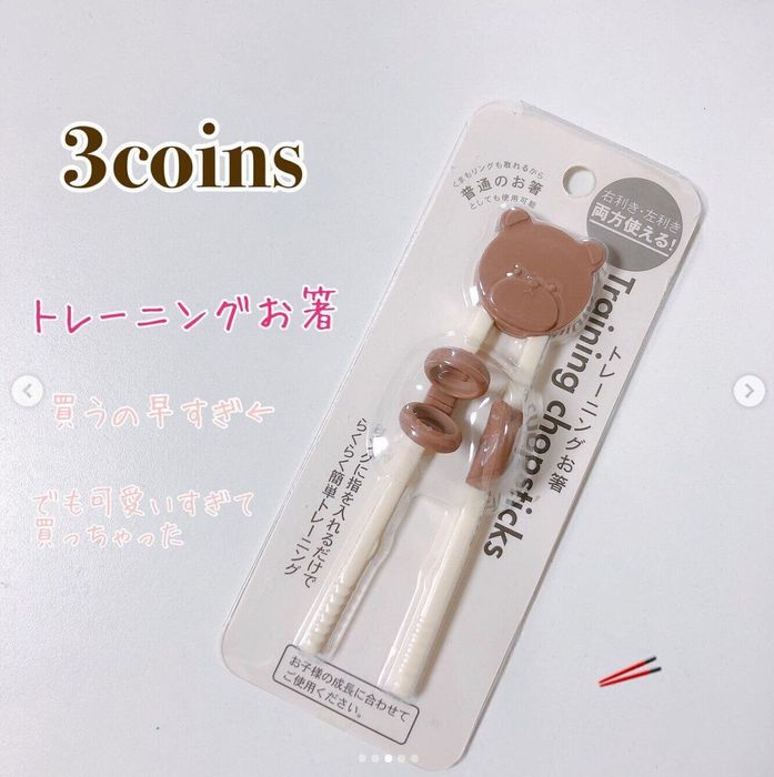 こちらはmmtk.12さんが3COINSで見つけたトレーニングお箸。くまのパーツとリングは取り外し可能で、普通のお箸としても使えるようです。成長に合わせて長く使えて便利そうですね♪ 実際に使うのはまだ先のようですが、かわいすぎて思わず購入してしまったんだとか。