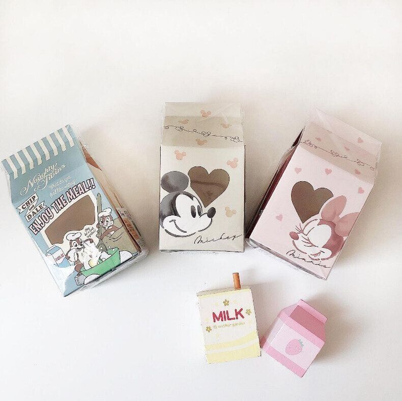 えりんぎさんはダイソーで牛乳パック型のボックスをGETしました! 柄はミッキー、ミニー、チップ&デールをチョイス。こんなユニークなラッピングなら、もらった人はますますうれしくなっちゃいそうですよね!