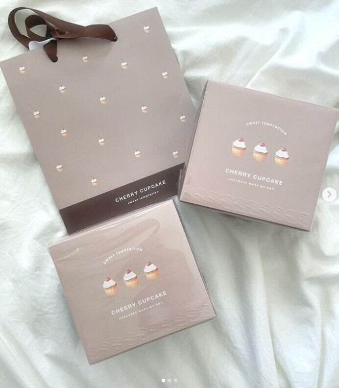 ri___chan121さんはダイソーでカップケーキ柄のボックスとペーパーバッグをチョイス! この方が「かわいいもの好きな人は絶対沼る」と太鼓判を押すほどキュートなんだとか♪ くすみカラーの色合いもおしゃれですよね!