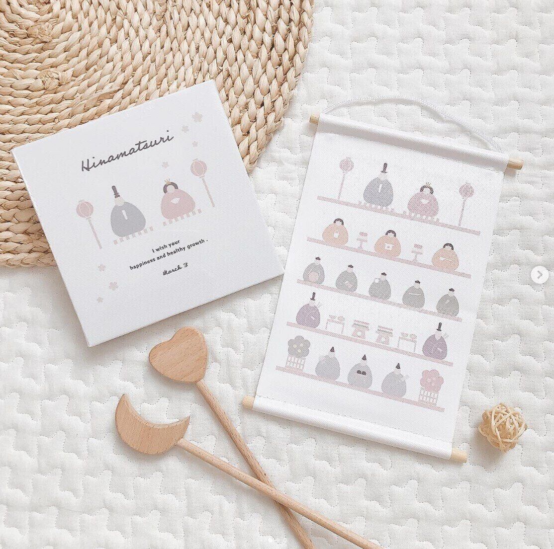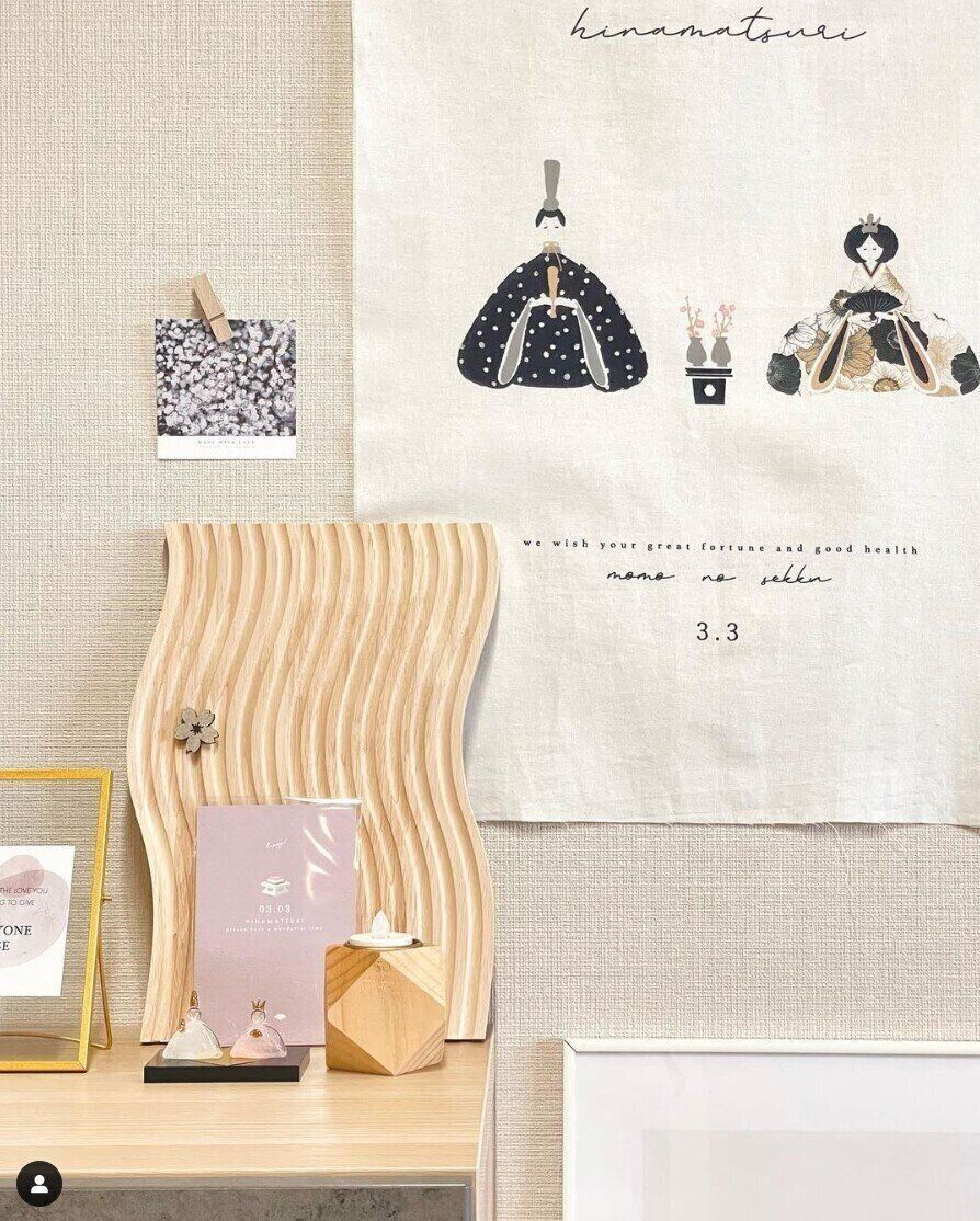 konopiさんは「アートパネル」と「タペストリー」をセリアで購入。ふんわりと優しい印象で可愛らしいデザインですよね。これなら、飾るだけで簡単にひな祭りが楽しめそう!コレは買いなグッズですね♪