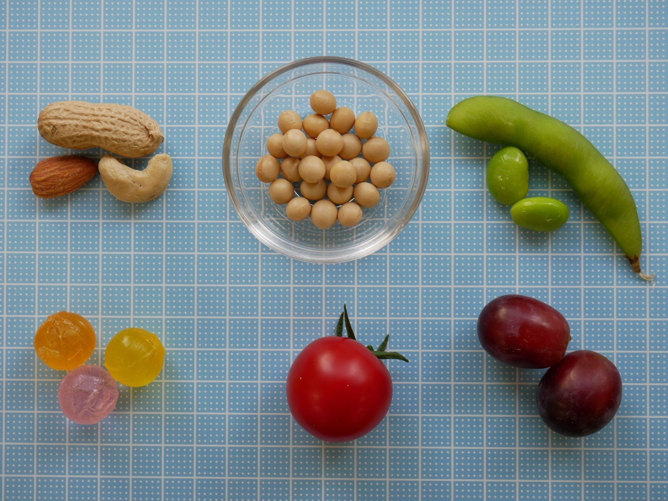 豆類、ミニトマト、ぶどう、あめ玉などが、のどに詰まりやすく危険です。
