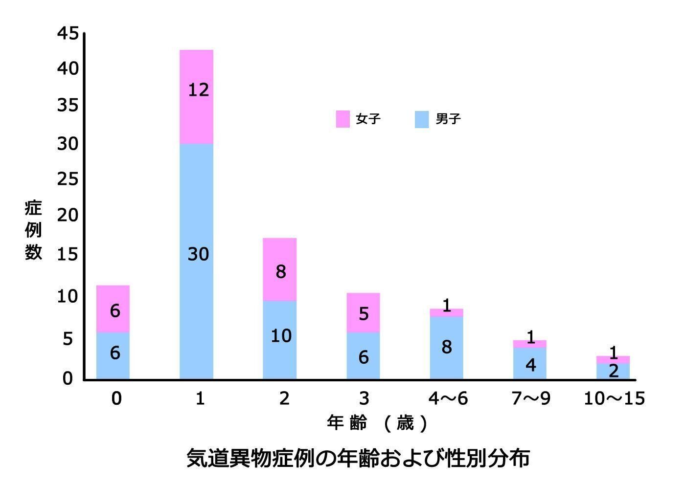 毎年、のどにものが詰まったことで50人近くの子どもたちが命を落としてしまっています。とくに3才以下の子どもに多い事故で、詰めたものの約7割は食べ物でした。命を落とすことは免れたとしても、気管の奥に詰まったものは全身麻酔をして取り出さなくてはいけません。子どもにとって大きな負担になります。