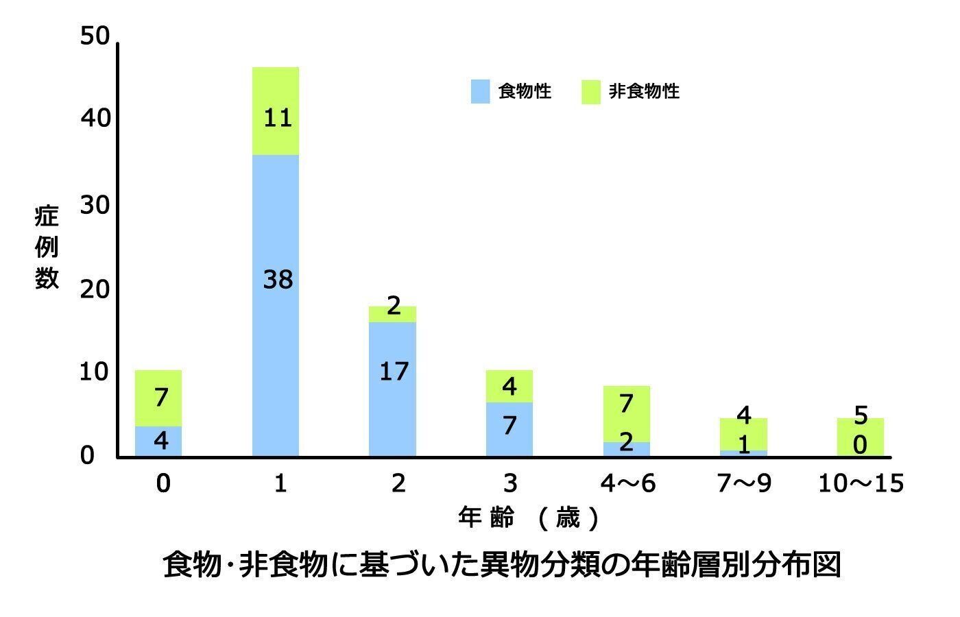 0~3才の子どもでは主にピーナツや節分の豆や枝豆などの豆類、ミニトマト、ぶどう、あめ玉などです。口に入るサイズのものはなんでも事故の原因となります。4才以上の子どもでは、歯の詰め物や小さいおもちゃなど食べ物以外のものが多くなります。