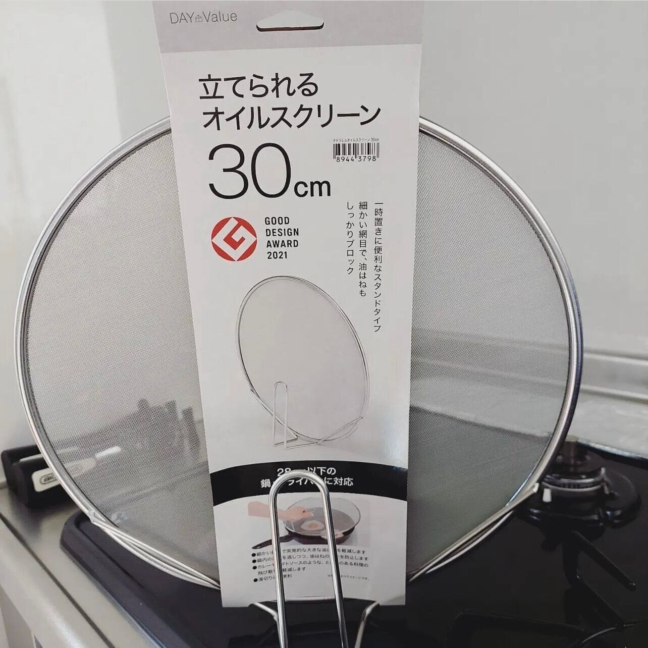 さゆりんさんがニトリで購入したのは、揚げ物調理の油ハネを防止してくれるオイルスクリーンです。さっそく使ってみたところ揚げ物にも炒め物にも大活躍!定番のうちわのような形とは異なり、こちらは立てられるタイプなので調理中の一時置きもしやすそうですね。