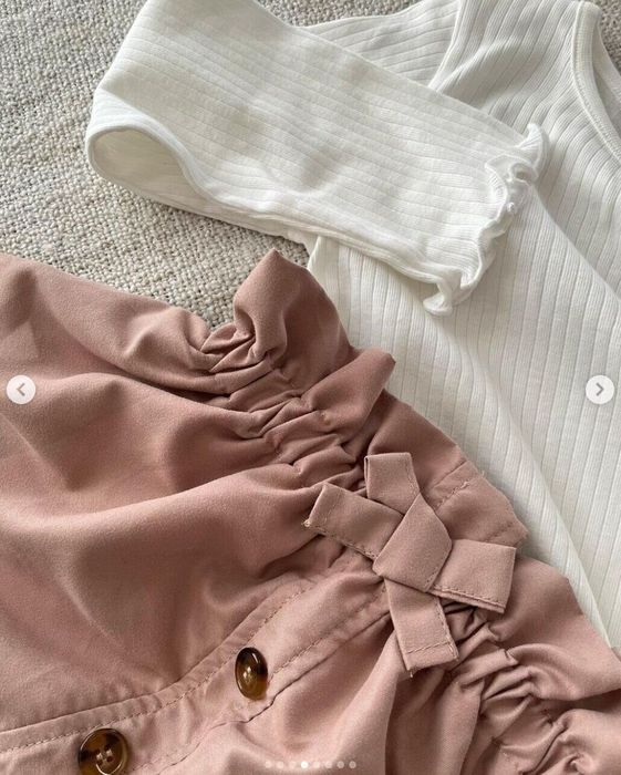 chiiiさんは全身西松屋コーデをセレクト!トップスは647円(税込)、スカートは768円(税込)とのこと。スカートのウエストはゴムになっているそうで、お出かけ時に動きやすいのも嬉しいですよね。こちらの方は姉妹お揃いコーデにしたんだとか♪