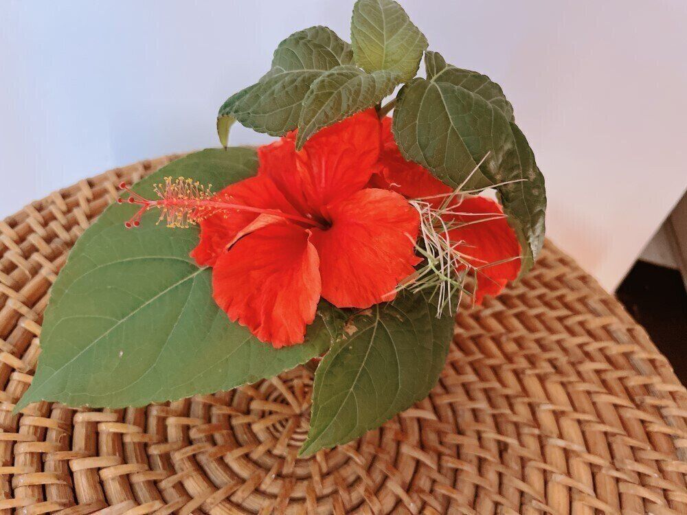 日々慌ただしく過ごしていたので結婚記念日を忘れていましたが、夫がどこからか摘んできた南国らしいハイビスカスでお祝いしてくれました。素朴ですが、心のこもったお花にとても嬉しくなりました。