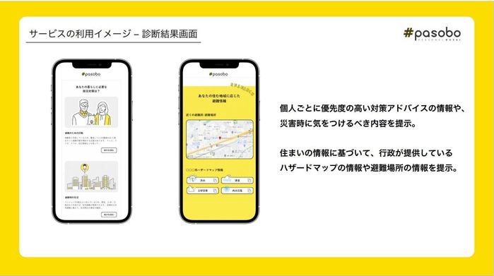 奥村 防災の難しさは、住んでいる地域、家の構造、家族の構成など、その人によって必要な備えが変わってくるところです。防災講座などではそれぞれの環境に合わせた対策が必要なことを伝えていますが、自分の家仕様にカスタマイズすることはなかなか大変です。2023年3月1日、私が監修に携わったパーソナル防災サービス『PASOBO』ができました。 リスク診断するだけではなく、そのリスクに応じての行動アドバイス、さらにその人、その家族に必要な防災商品まで提案する防災コンシェルジュのような機能も備わっています。しかも自分の必要な防災グッズが1分でわかるんです。このようなサービスも利用してほしいと思います。