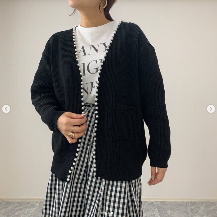 __shiiiino__さんはパールビジューが魅力的なニットカーディガンをセレクト!ゆったりとしたシルエットで着丈は長め、生地はもちもちとした柔らかい触り心地なんだとか♪ 周りと差をつけられるようなデザインも魅力的なポイントだそうで、値段は2,420円とのこと!