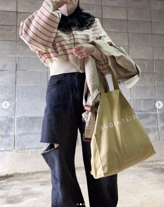 ピンク×ボーダーがお気に入り!ダメージデニムにも合う甘辛ミックスコーデ