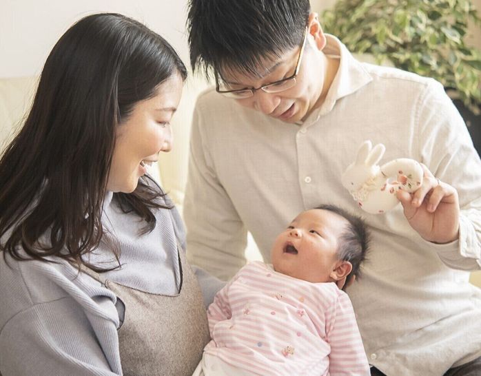 ママは不動産会社勤務で現在育休中。パパは建設会社勤務。5才からバイオリンを習っていたというパパにあこがれて、結婚後ママもバイオリンの練習をスタート。いつか家族で音楽演奏するのが夢。