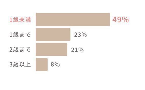 愛波 アンケートの結果、ベビーベッドを卒業した年齢は、1歳未満が圧倒的に多いという結果でした。