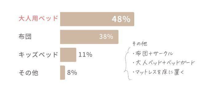 愛波 ベビーベッドを卒業後のねんねの場所は、大人用ベッドの方が約半数いらっしゃいます。