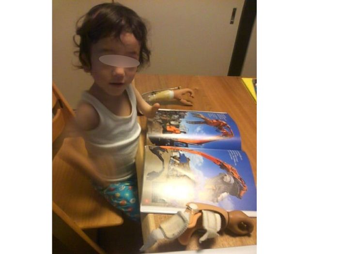 ただ、貴之さんと美幸さんは、心臓の1回目の手術が終了したころから、翔太くんの手のことがとても心配になったそうです。ちょうど東大病院のリハビリテーション科に義手を専門にする先生がいたために、翔太くんは1歳4カ月のころから義手を装着して生活することになりました。