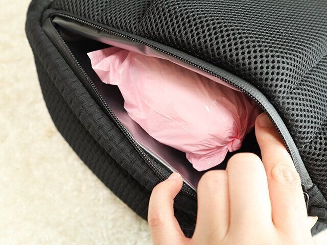 荷物はすべてすっぽりと収まり、かなり余裕があります。乳児のミルクセットや子どもの上着、自分の荷物も入りそうです。