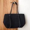 同素材の「SBR トートバッグ」(税込2,900円)もマザーズバッグとしておすすめ。肩から掛けられる大きめのトートバッグで、広めのマチが付いていて中身を入れると自立します。取っ手が細めなので肩に食い込みそうだなぁと思いましたが、実際に使ってみたらフカフカの当て布が付いていたので痛くありませんでした。