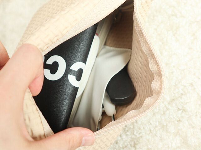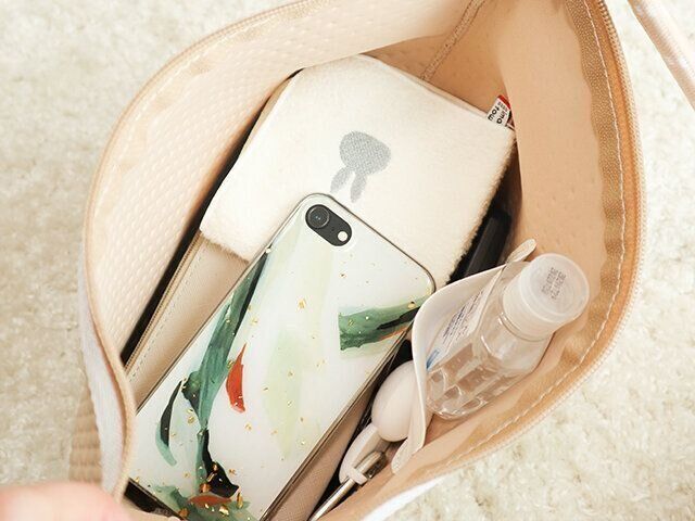 マチがついている「SBR トートポーチ」は中身がとっても見やすく出しやすい! 長財布もスマホもぴったり入って気持ち良いです。リップクリームがちょうど入る大きさの内ポケットが1つ付いています。