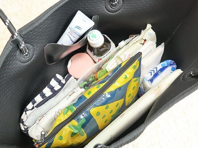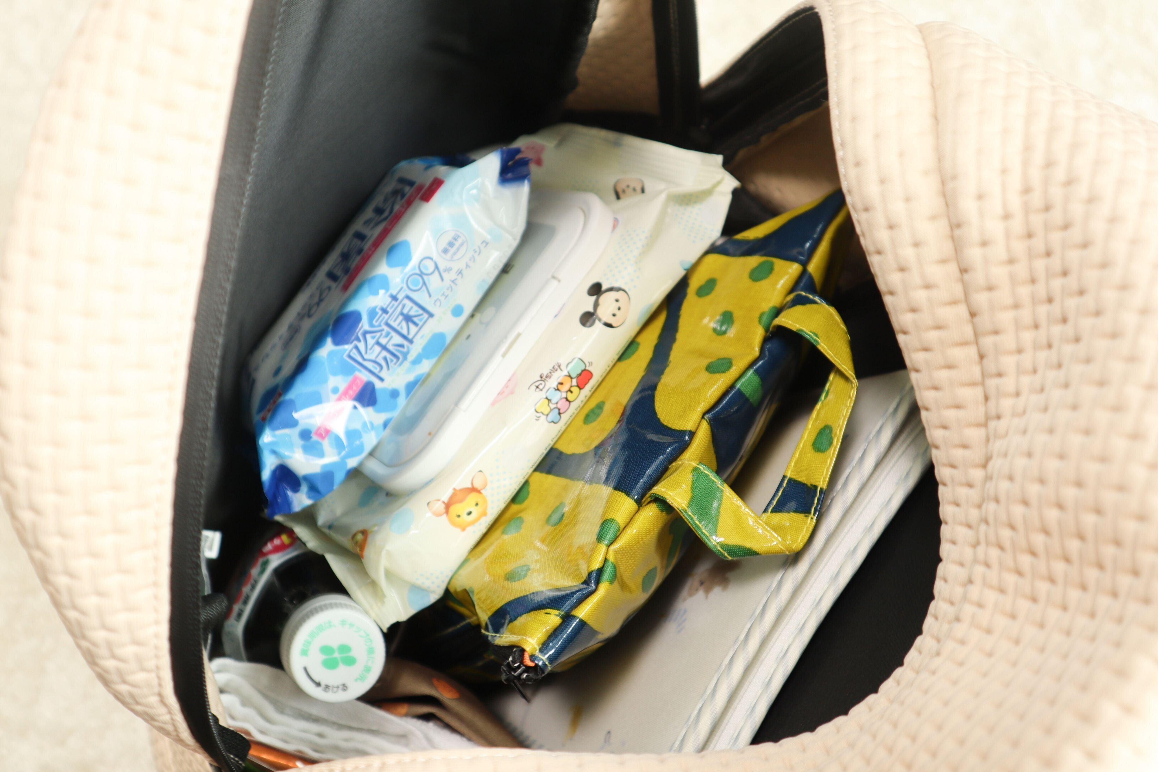 荷物はすべてすっぽりと収まり、かなり余裕があります。乳児のミルクセットや子どもの上着、自分の荷物も入りそうです。