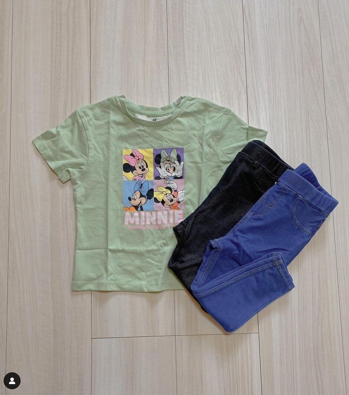 _hii.f__さんはH&Mオンラインでこちらのアイテムをまとめ買い!ボトムスはセールになっていたそうで、着回ししやすいアイテムなので迷わず買ったんだとか♪ ミニーちゃんトップスは800円ほどで夏に着せたくなるアイテムとのこと!