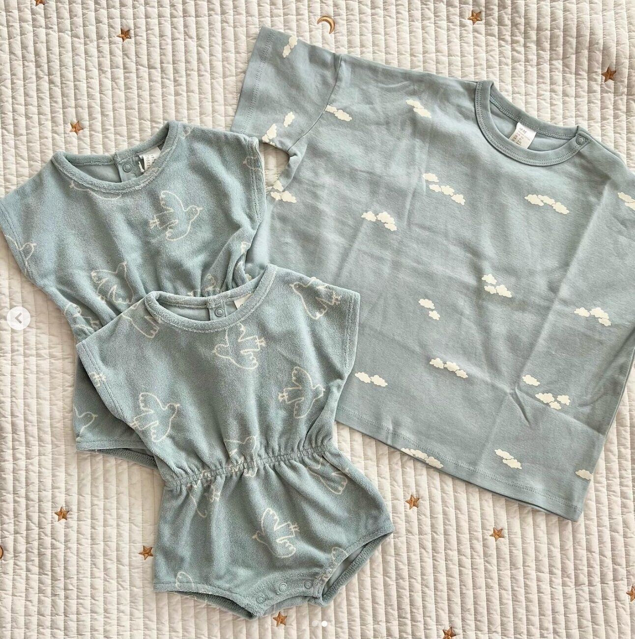 haruさんはH&MでこちらのロンパースをGET!セール期間を利用したことで定価よりもお得に買うことができたんだとか♪ グリーン系を中心に、全体的にくすみカラーがおしゃれな雰囲気ですよね。