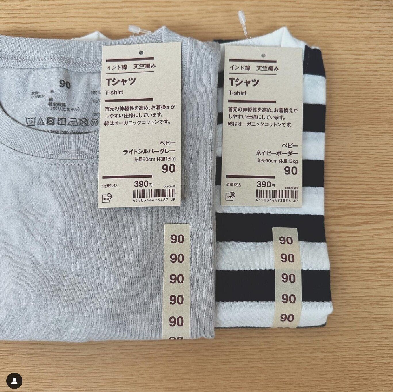 aki_life_ysrrさんは無印良品でこちらのトップスを2枚GET!それぞれキッズサイズとベビーサイズで、兄弟お揃いで着せたいと考えているんだとか。価格はそれぞれ390円だったそうで「こんなに安くていいのかな?と思う値段でした」とのこと!