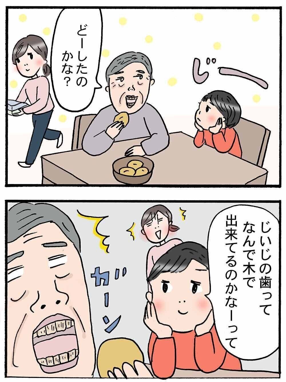 たしかにじいじの歯は私を上回る茶色さです。息子には木に見えたようでした。笑