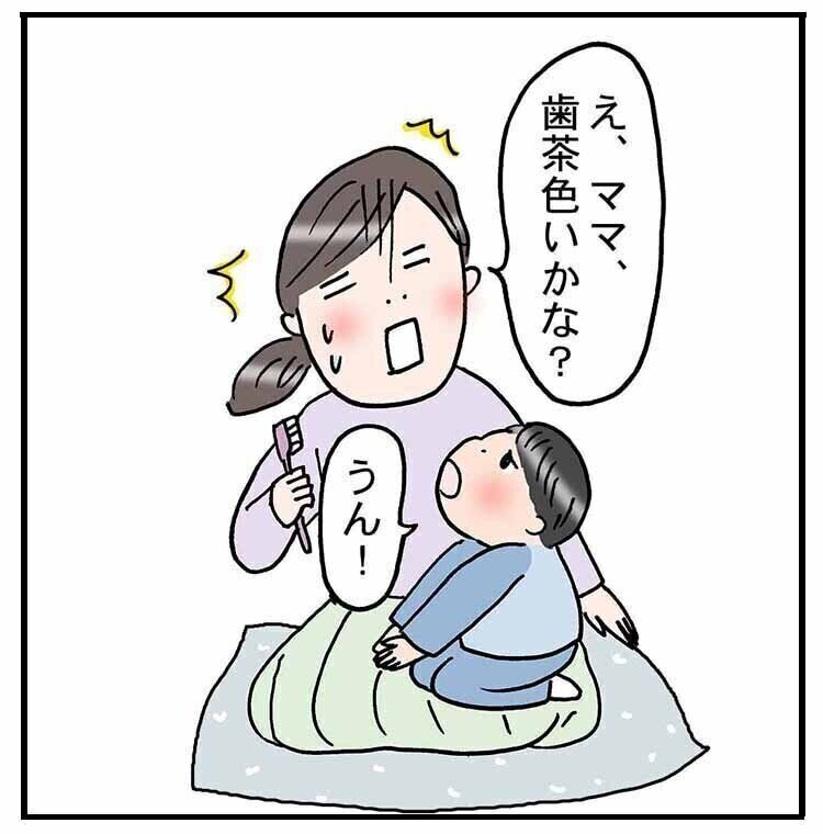 先日、息子の歯磨きをする際、顔を近づけて、見本になるよう、口を開けながら磨いてあげていました。