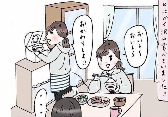 ようやくつわりが落ち着いてきたと思ったら、今度はご飯がおいしくて食欲が止まらなくなった村澤さん。そんな村澤さんに、夫さんが言い放った言葉にモヤモヤしたエピソードです。