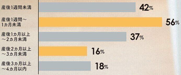 アンケート結果によると、産後2カ月未満に“大変&ツライ”のピークが来て、その後、徐々に緩和される傾向が。