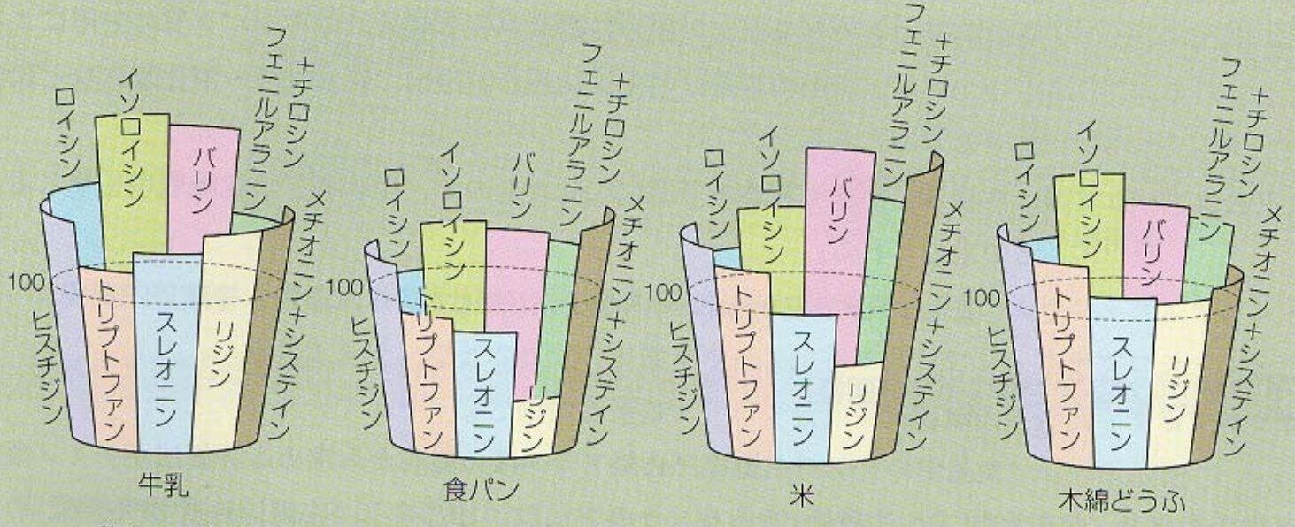 同じように必須アミノ酸も、量の少ない種類に合わせて他の種類が活用されるため、それ以上の量があっても排泄されてしまうのです。