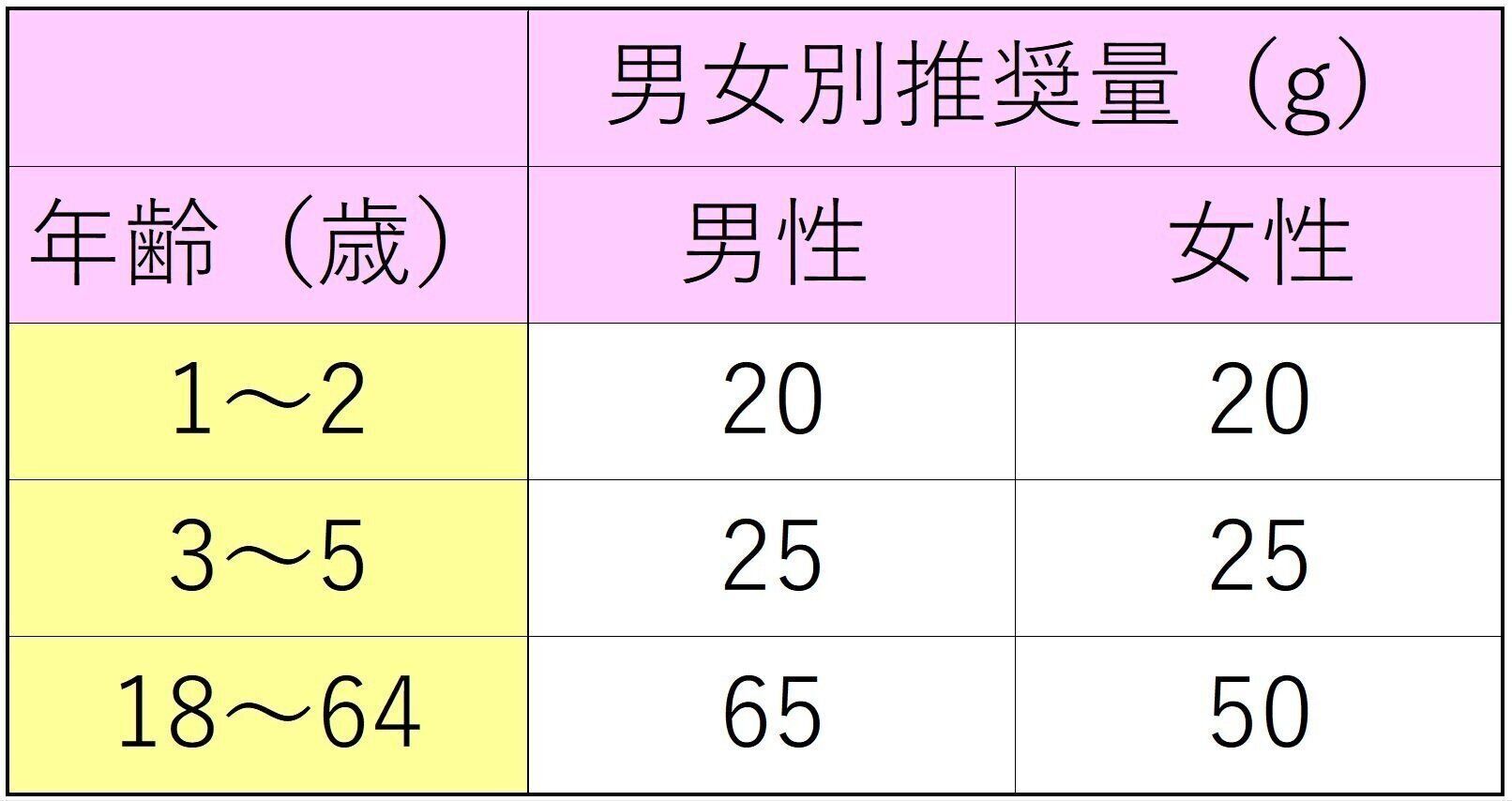 年齢や性別に応じて、1日の推奨たんぱく質量が「日本人の食事摂取基準(2020年版)」(※3)に示されています。