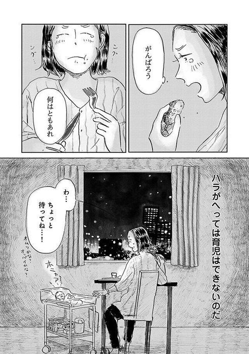 コロナ禍での妊娠と出産を経て、赤ちゃんのお世話に明け暮れるばかりで、なかなか自由に出歩けない時期がありました。そんなときも生活の中での楽しみはやはりおいしいものを作って食べること。コロナ以前とは少し違う意味をもった“ささやかなおうちごはんの喜び”や、はじめての育児体験を題材にした作品を描くことでこの時代の雰囲気を残しておきたいという思いがありました」