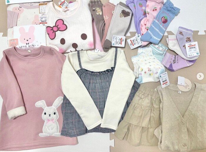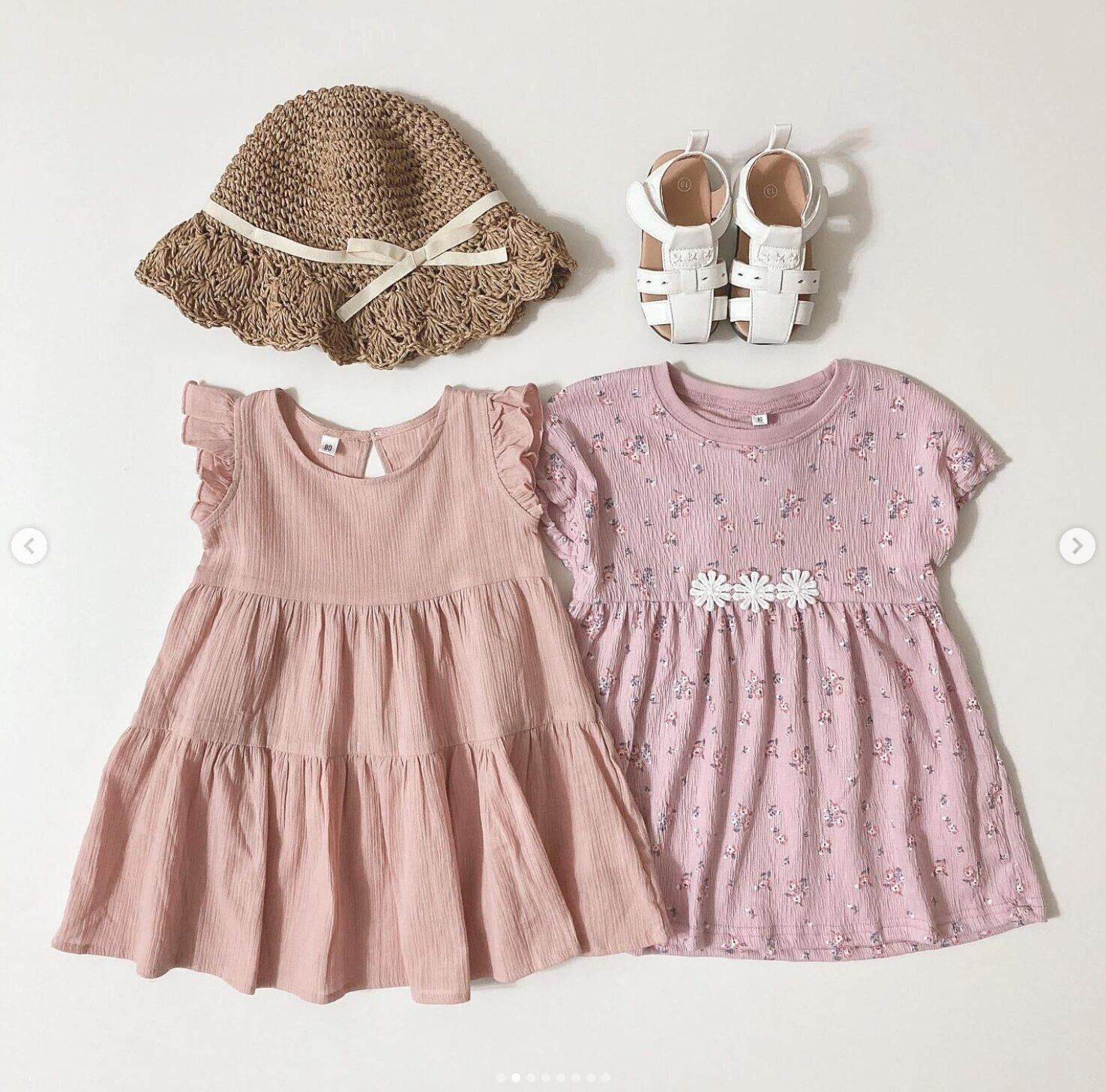 こちらはnanaさんの西松屋購入品。ワンピースはそれぞれ1,087円、麦わら帽子は746円、サンダルは966円だったとのこと!花柄ワンピースはストレッチ素材だそうで、動きやすそうなのも嬉しいポイントですよね♪