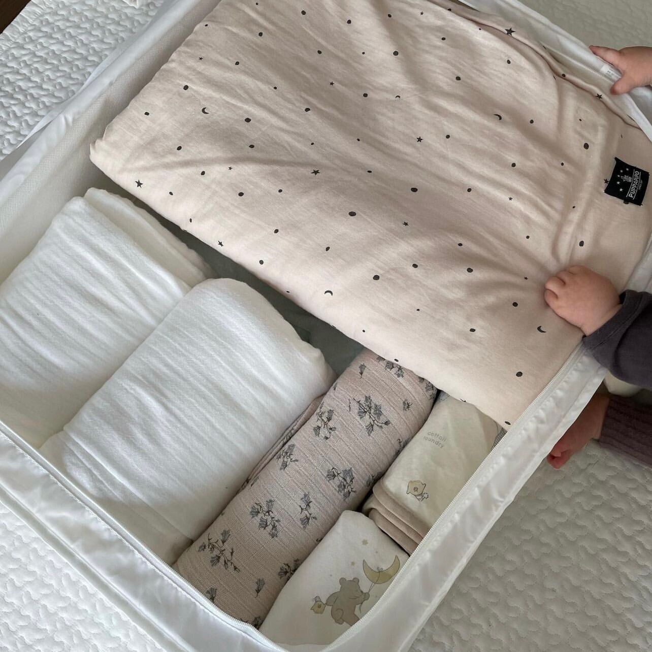 macchaさんは季節外のベビー布団をIKEAのスクッブに収納しているみたいですよ。ベビー用の寝具は大人用と比べてコンパクトなので、まとめて収納しておかないと使おうと思ったときにどこにあるかわからなくなっちゃいますよね。スクッブはとても便利なのでおすすめなんだそう。